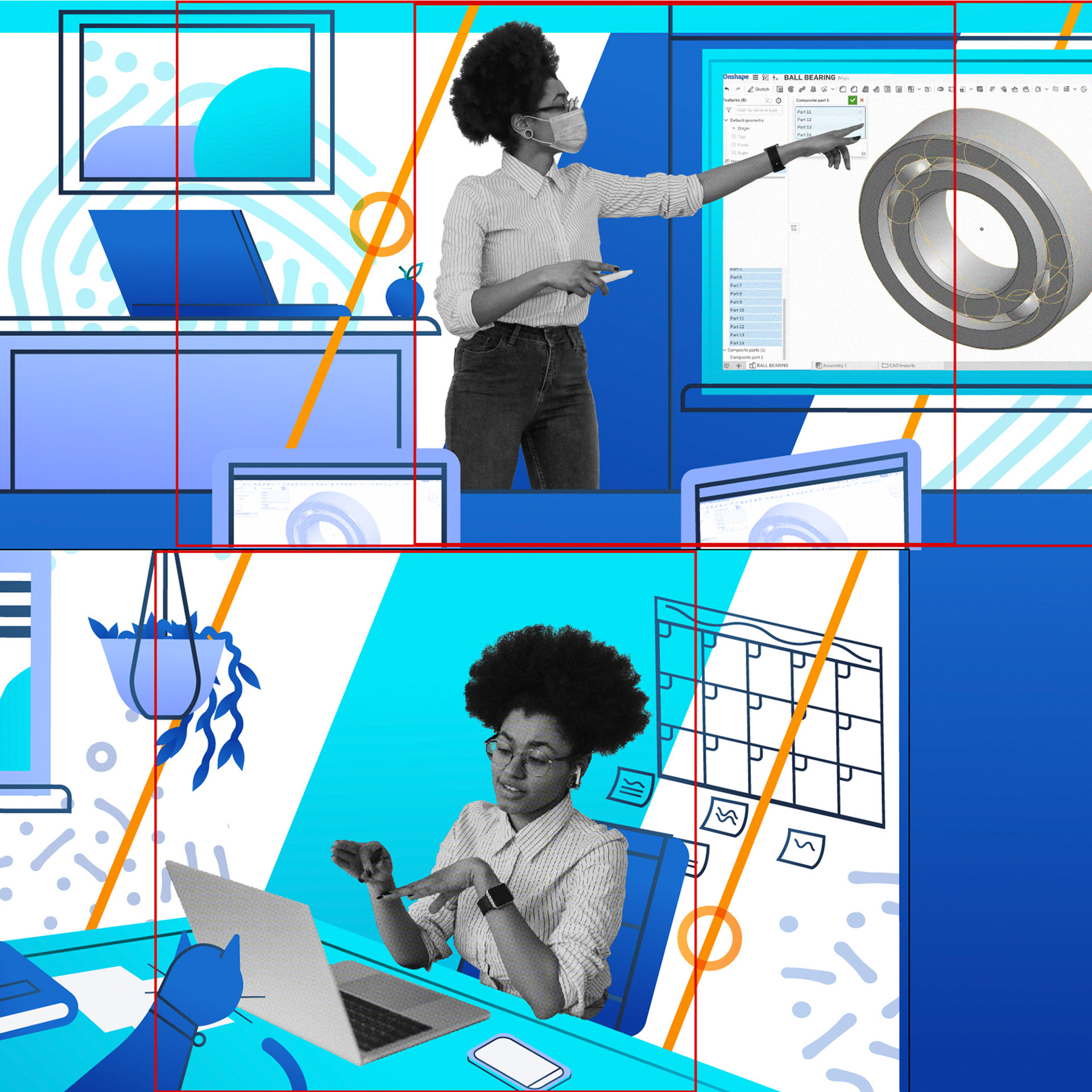 Created these animated GIFs for Onshape Education showing students and educators that they can use the Onshape CAD platform anytime and anywhere.